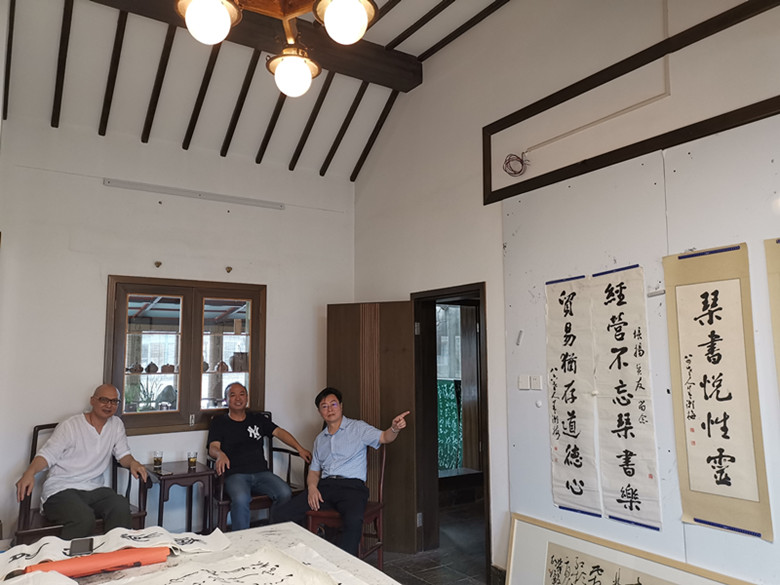 7月18日上午,民建南通市委专职副主委王忠到南通经济技术开发区张培杨家中,亲切看望了民建南通书画院书法家张培杨、郑乐为两位会员。 盛夏酷暑,王忠与两位书法家亲切交谈,品茗论字。张培杨是市书法家协会理事兼开发区书法家协会主席,他拿出几十幅珍藏的南通著名老书法家、他的恩师朱漱梅书法作品,深情回顾了跟恩师朱漱梅学习书法过程中的点点滴滴精彩片断,大家被百岁老人朱老的书法所震撼,更被他们的师生情谊深深感动。身为中国书法家协会会员、南通市书法家协会理事的郑乐为先生激动说,朱老书法植根传统,又有创新,碑帖结合,达到了很高的艺术境界。 江苏省民建书画院副院长、民建南通书画院院长、南通市书法家协会常务理事王忠高度评价了朱老的书法艺术。他指出,朱老书法无论真、行、草、篆均达到较高境界,尤其是行书,结体工稳,碑帖交融,笔法纯正,墨色鲜活,有正大气象,有这样的杰出书法家是南通之幸。他认为,朱老的书法艺术应得到大力宣传弘扬,民建南通书画院拟成立朱漱梅书法研究所,加强南通本土书法家的研究工作。 最后,王忠希望两位书法家劳逸结合,继续潜心书艺,再创佳作。